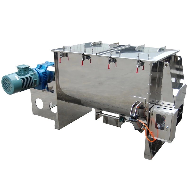 横のリボンのミキサーは容器、かいおよび過渡的な部品をかき混ぜるねじで構成される:ねじかいは2つの層か3つの層に一般になされる、外ねじは双方からの中心へである材料一点に集中し、ねじの内部の層は液体を加える必要があるおよびのり材料運ぶ粉の対流の混合からの中心からの双方に材料を。