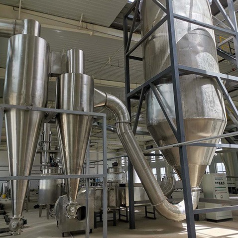 液体材料は直通のダイヤフラム ポンプでポンプでくまれる。液体材料は小さいしぶきに粉砕することができる。それからそれは落ちる熱気と集まる。粉材料のほとんどは主要なタワーの底の出口から集められる。良い粉のために、私達はまだサイクロン集じん器および布のバッグ フィルタによって絶えず集まる。